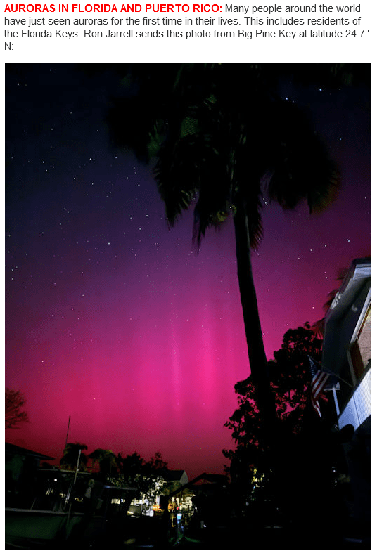 Below we can see some photographic captures of this beautiful phenomenon, seen as far as the latitude 24.7° N!